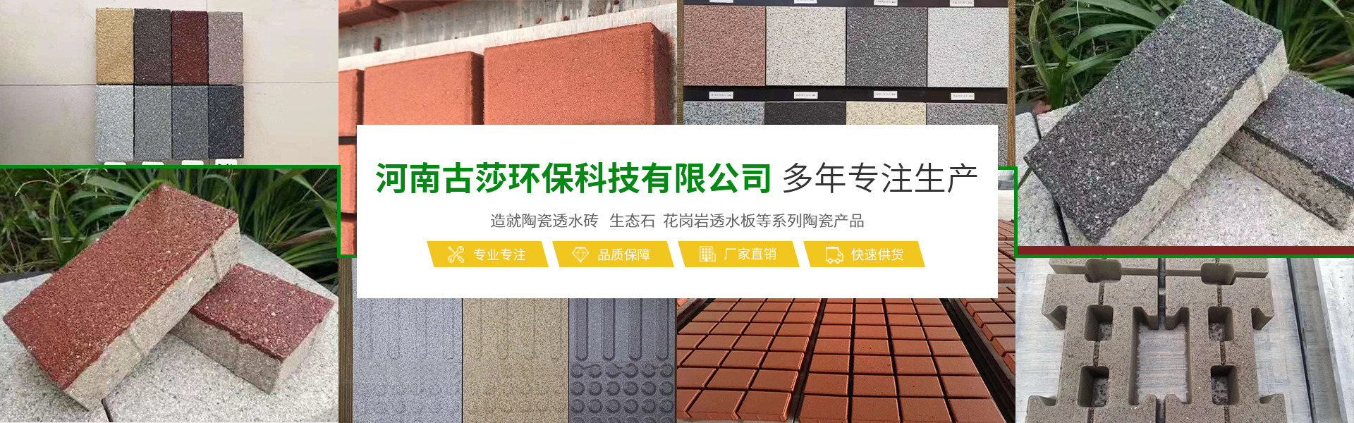 河南古莎環(huán)保科技有限公司總坐落于交通樞紐城市鄭州,是一家具備研發(fā)、生產(chǎn)、銷售能力為一體的綜合性現(xiàn)代化陶瓷企業(yè)。本公司專業(yè)生產(chǎn)經(jīng)營生態(tài)陶瓷透水磚、生態(tài)鋪石、PC仿石材透水磚、PC仿石材景墻磚、普通透水磚、燒結磚等系列產(chǎn)品,完善的研發(fā)團隊,完善的生產(chǎn)流水線設備,打造完善的陶瓷企業(yè)。古莎環(huán)保科技現(xiàn)代化陶瓷企業(yè)是美化城市,改善生活環(huán)境質量的生態(tài)環(huán)保產(chǎn)品,可廣泛應用于公共建筑廣場、城市道路、公園、藝術景觀、廊道、房地產(chǎn)、別墅住宅小區(qū)、地鐵口、車站、高速公路服務區(qū)等。古莎環(huán)保科技在原有陶瓷企業(yè)基礎上,另拓展園林綠化、市政施工、瀝青包工包料施工、公路維修等業(yè)務板塊,專業(yè)培訓了一些園林綠化、市政施工技術人員,并有多年的施工養(yǎng)護經(jīng)驗以及建筑工程經(jīng)驗。保證市政工程施工質量以及園林綠化后期養(yǎng)護規(guī)范化、專業(yè)化。古莎環(huán)保科技所遵循的企業(yè)與品牌發(fā)展思路,是奠定在品質與產(chǎn)品應用之上。環(huán)保理念由我們共同倡導,理性思考,以推進步,感性溝通,以共建優(yōu)越。古莎環(huán)保科技與大家真誠合作,攜手共進,為助力海綿城市建設,建筑高品質的綠色城市生活貢獻一份力量!